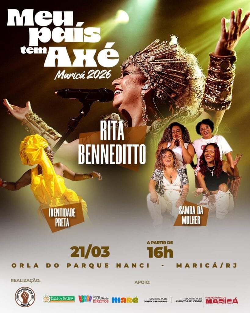 Maricá recebe evento “Meu País Tem Axé” com show de Rita Beneditto no dia 21 de março.